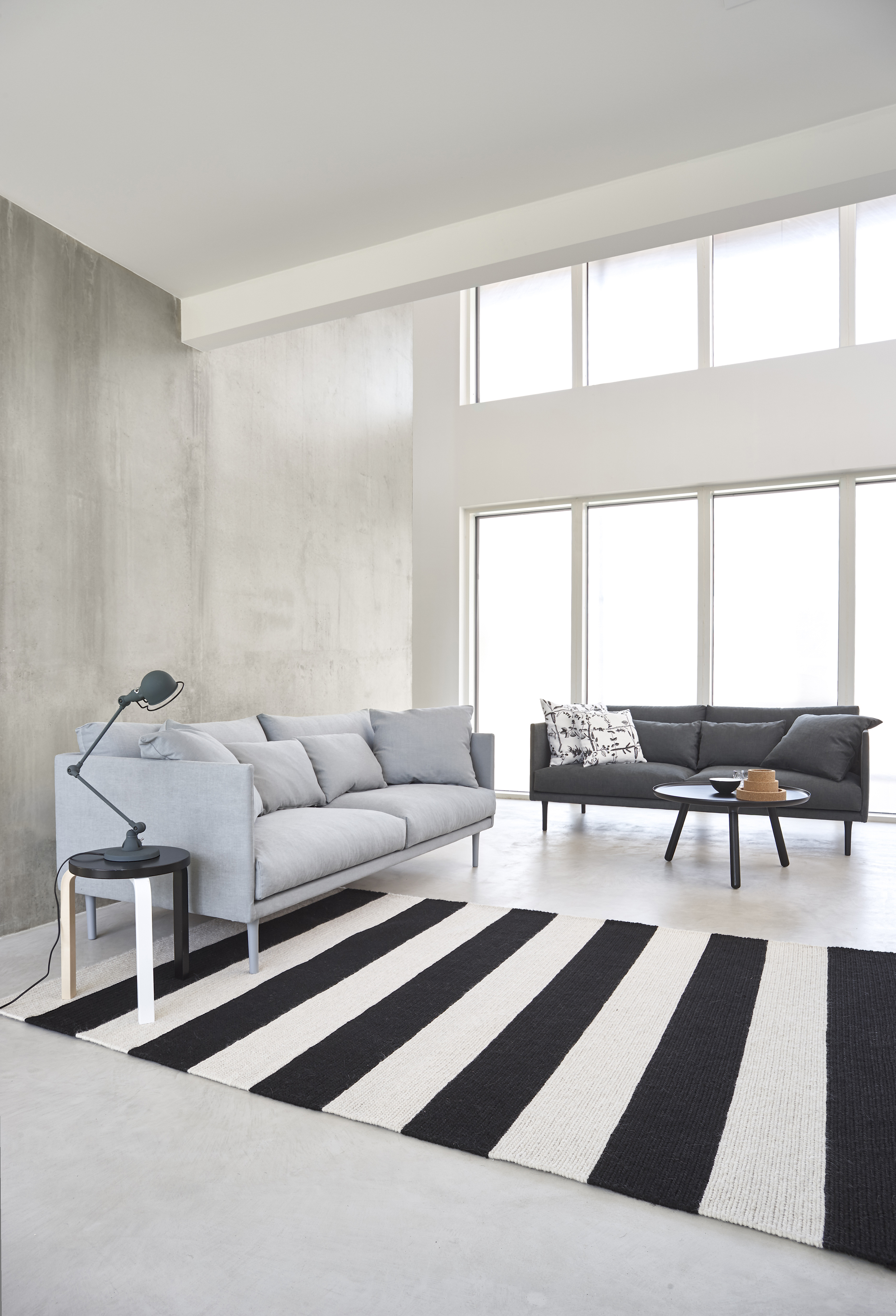 suunnittelija Jaakko Mäntylän kanssa. Sohvien rennot istuintyynyt ovat